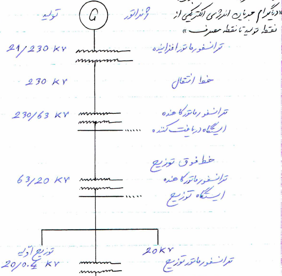 دیاگرام انرژی الکتریکی از نقطه تولید تا نقطه مصرف