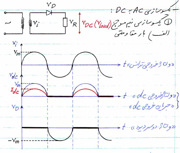 یکسو سازی نیم موج با بار اهمی - سلفی