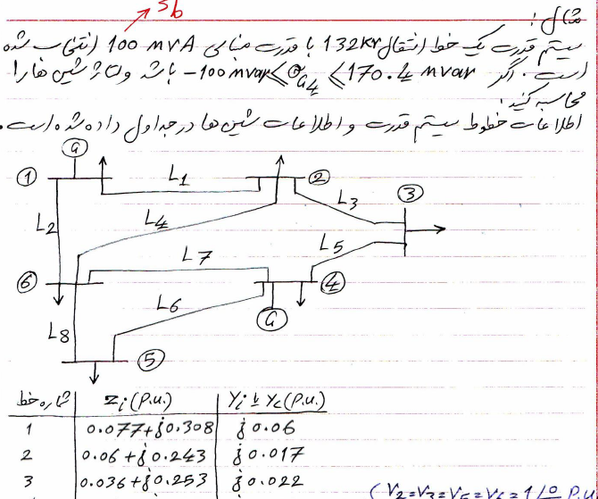 محاسبه فدرت اکتیو و راکتیو جاری شده بین دو شین