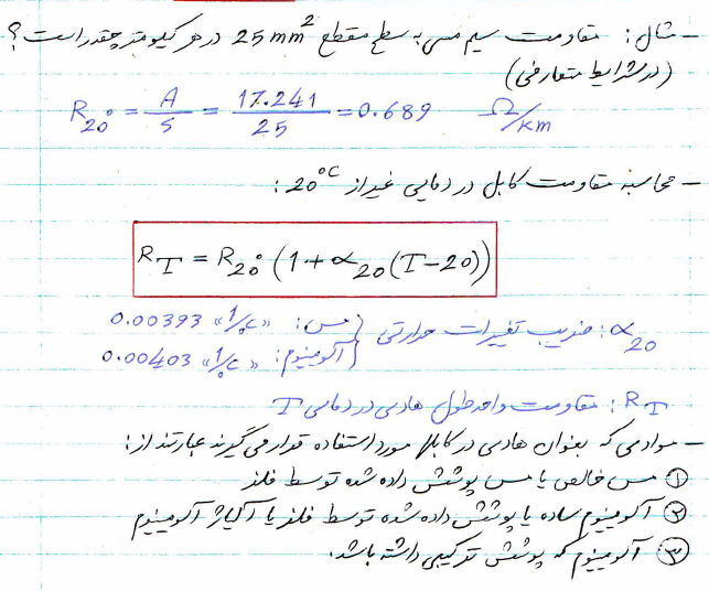 محاسبه مقاومت کابل در دمای بالاتر از 20 درجه