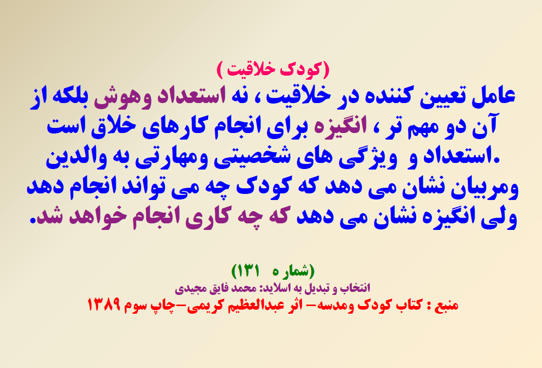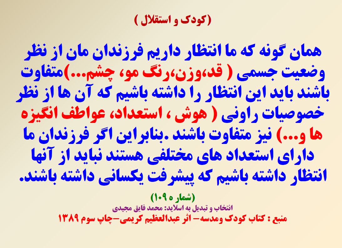◦از طرفی والدین هم باید به تفاوت های فردی فرزندان
