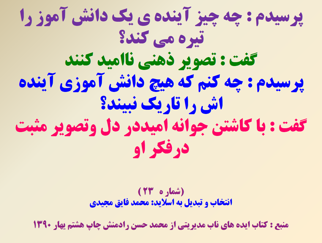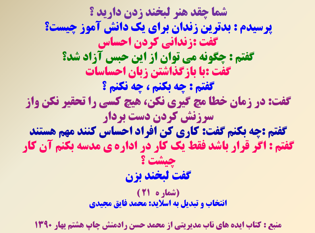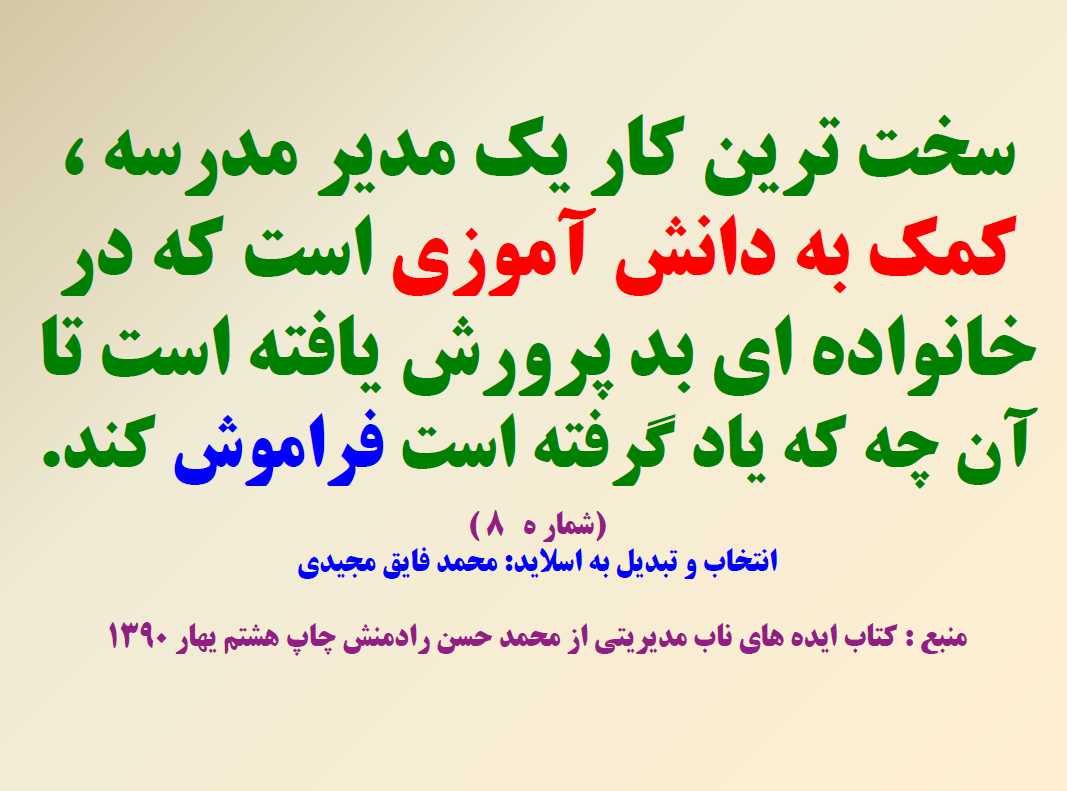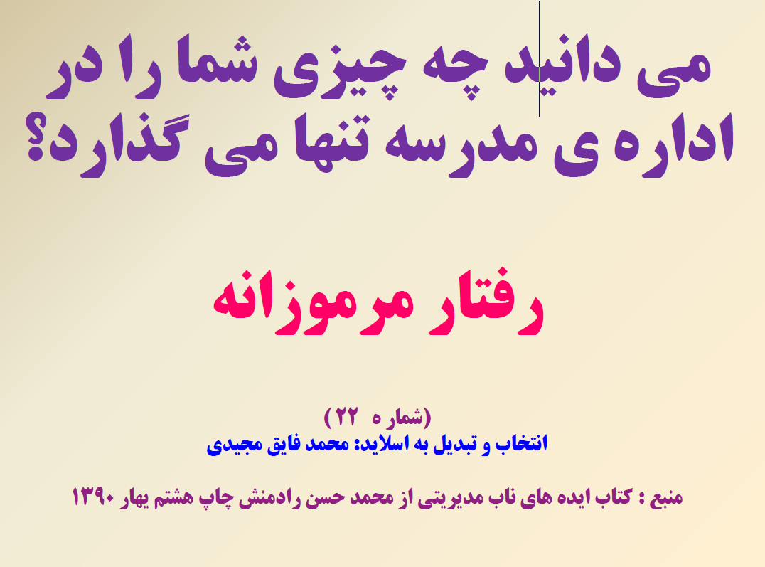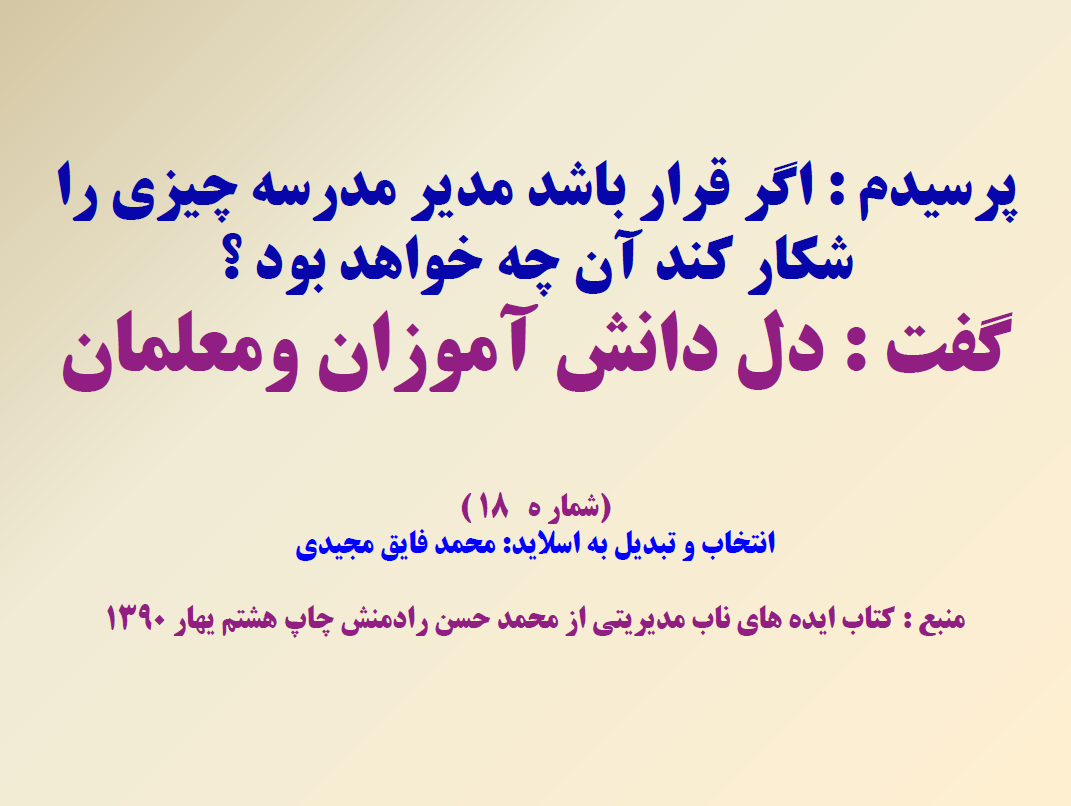 110نکته به صورت انتخابی جدا گانه به صورت pdf در آمده در ضمن بیست نکته آن به صورت پاور پوینت ارایه شده است در دوران تدریس ، کارشناسی و معاونت مدرسه از این کتاب خیلی بهره بردم امید وارم برای شما هم مفید باشد نمونه چند اسلاید هم به اشتراک می گذارم.