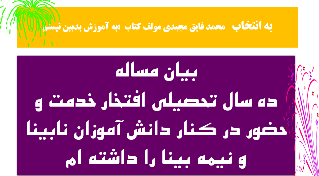 ده سال تحصیلی افتخار خدمت و حضور در کنار دانش آموزان نابینا و نیمه بینا را داشته ام