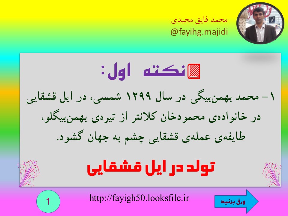 ی بهمن بیگلو، طایفه ی عمله ی قشقایی چشم به جهان گشود.